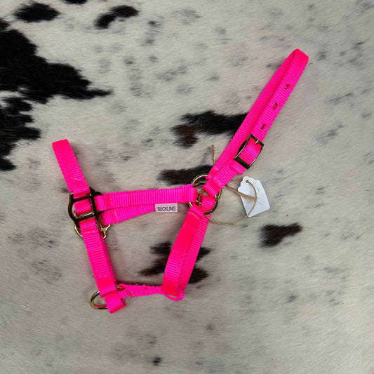 Hot Pink Nylon Suckling Foal Halter w/ Gold Hardware