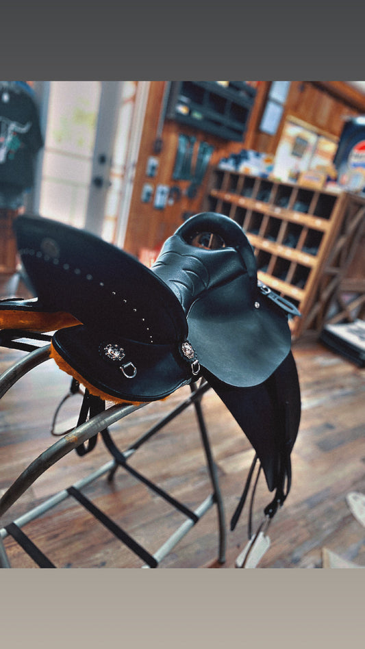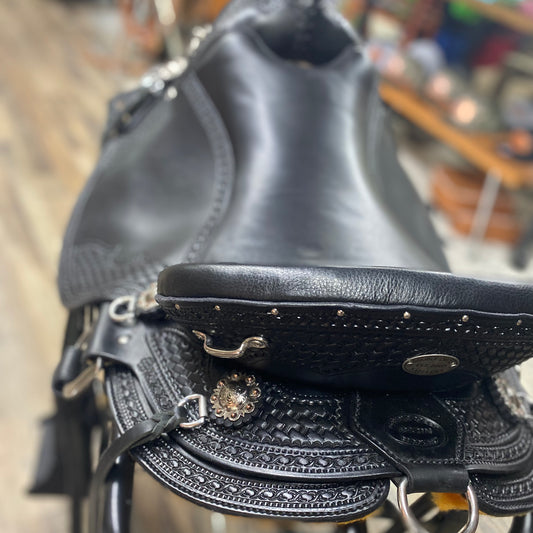 NEW BLACK Henry Miller OLD TIMER 17” Handcrafted Custom Deluxe Tooling & Berry Conchos