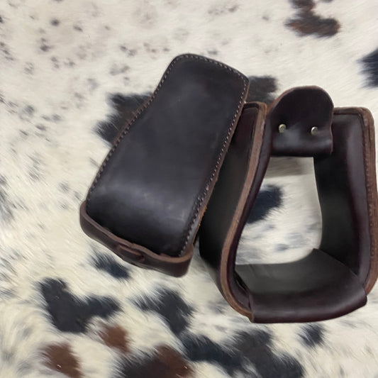 Dark Brown Leather Western Covered Tapaderos Stirrups
