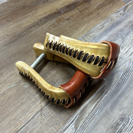 Light Brown Leather Western Covered Tapaderos Stirrups