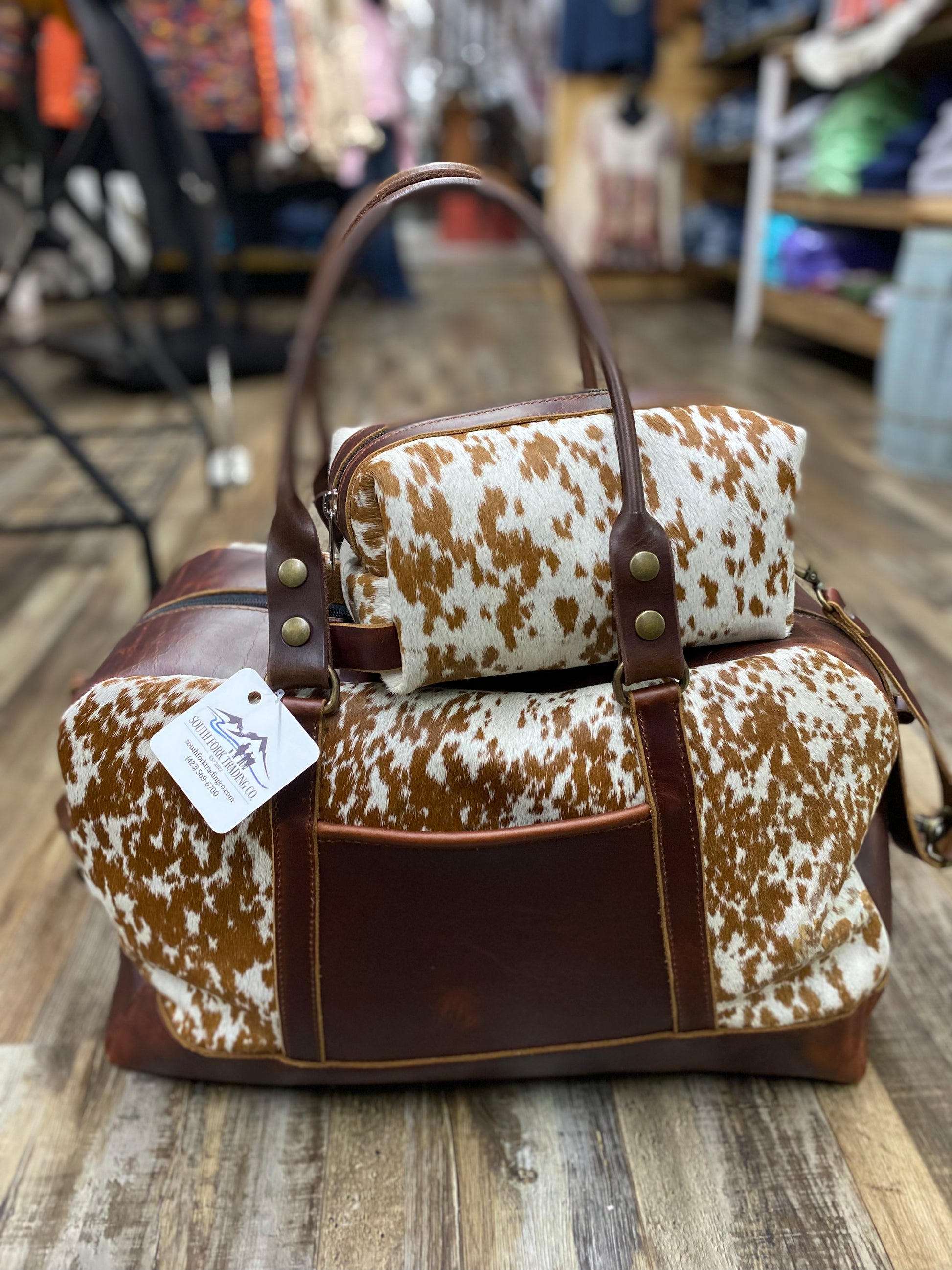 Amish Crafted “Get Away” SET Rectangular Shaped All Leather & Cowhide Toiletries Bag & Large Duffle