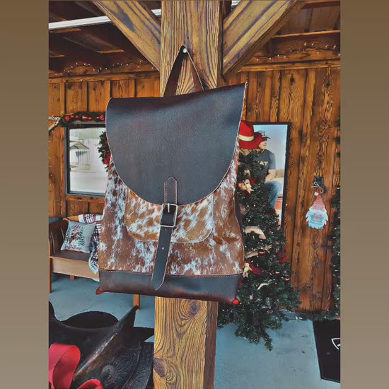 Expertly crafted by the Amish, the “Road Runner” BACK PACK boasts a rugged blend of dark brown leather and speckled cowhide. With a front buckle and flap closure, as well as an interior pocket, this spacious backpack exudes both style and functionality for all your adventures.