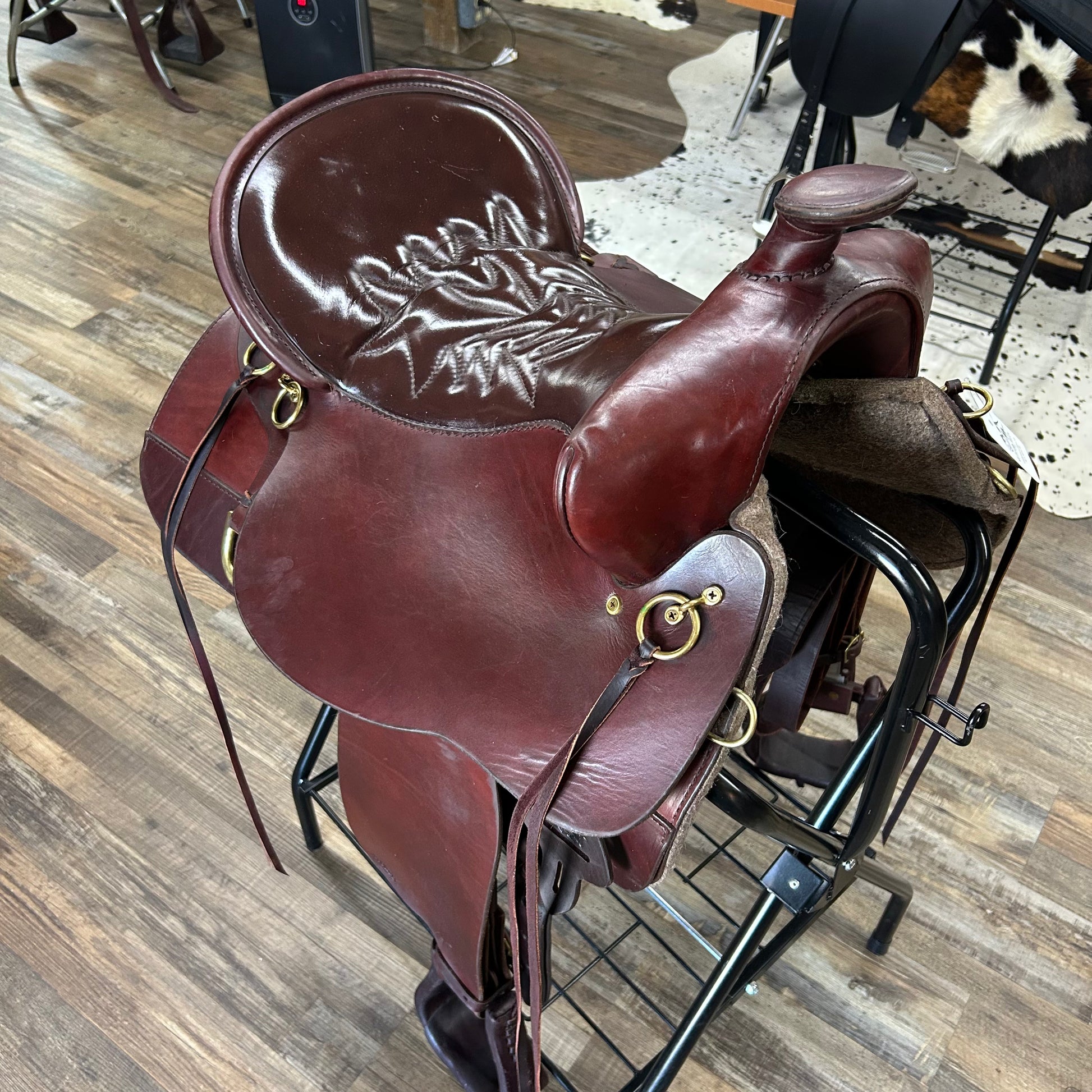 Retails for $3499. Wider swells than most saddles with deep, 5” cantle for back support and Tucker’s patented Gel-Cush Shock Absorbing seat. Seat is built on a fiberglass-reinforced DURAhide covered wood tree that is strong and lightweight.