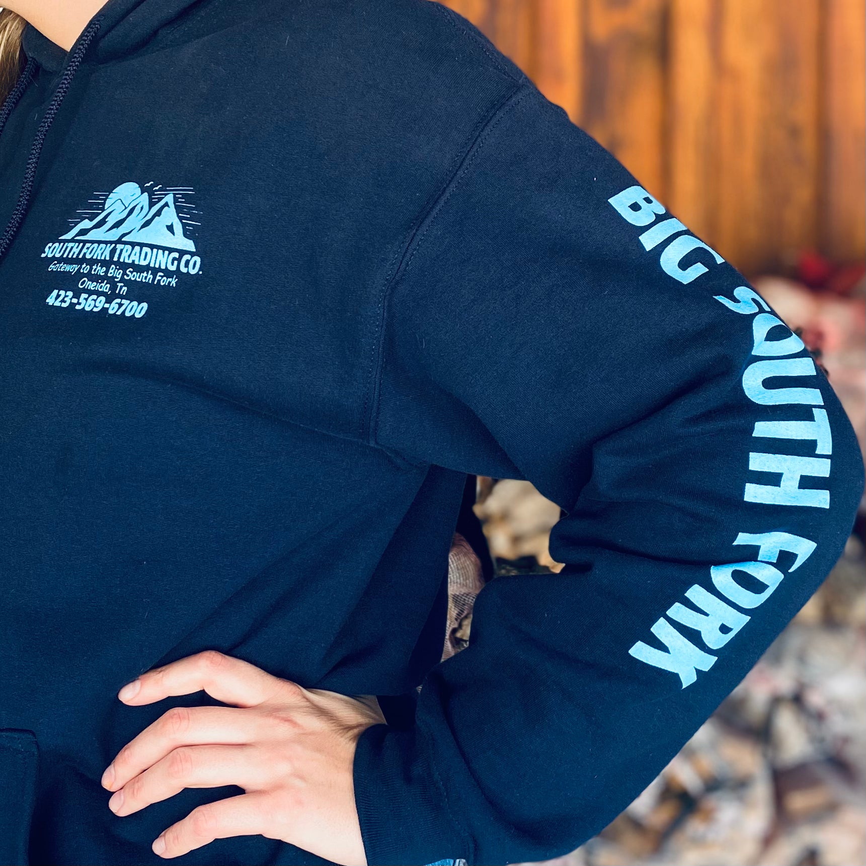 NEW Navy & Teal South Fork Trading Co - Adult Unisex Hoodie w/ Detailed Sleeve