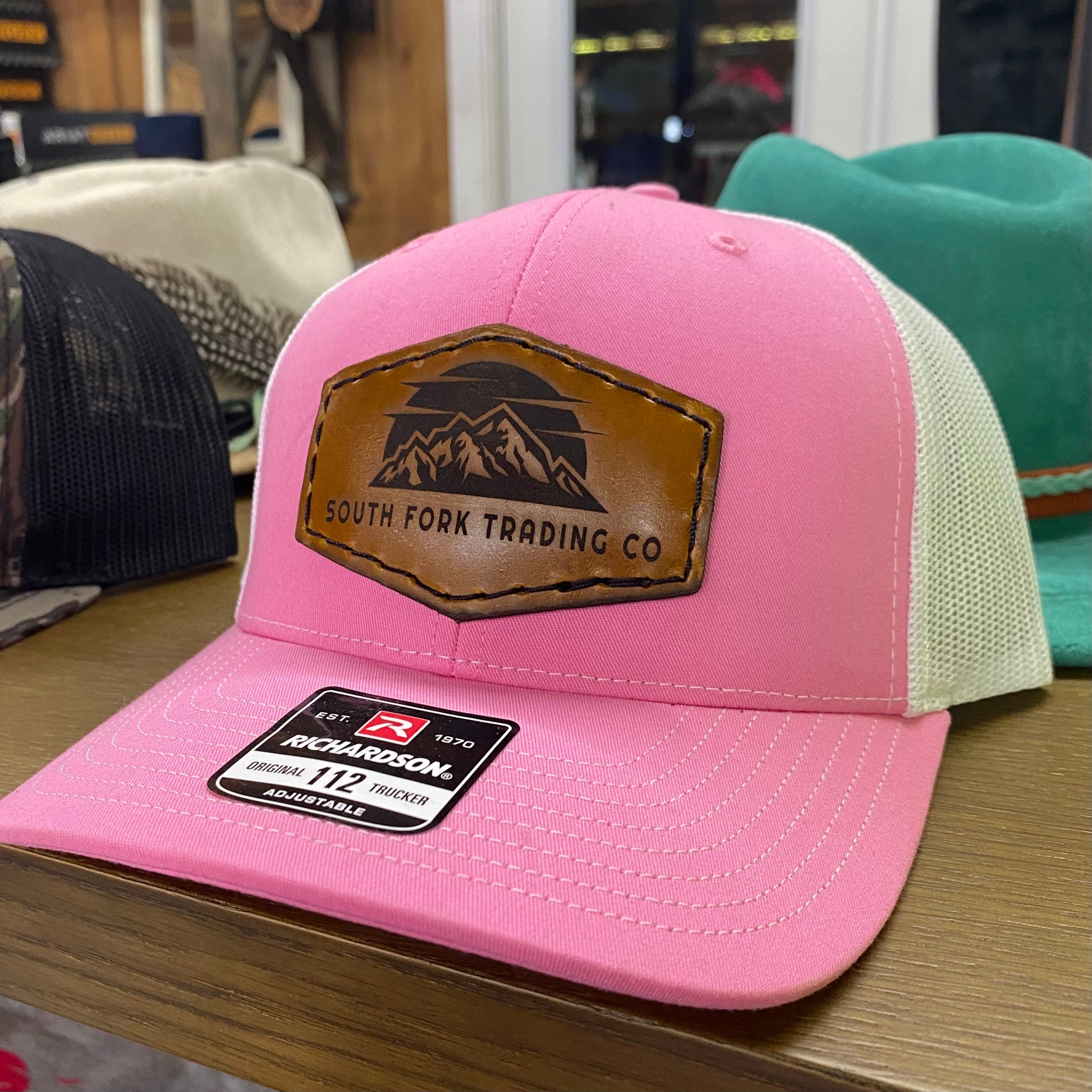 Top off your look with the South Fork Trading Co. Leather Patch Trucker Hat. With a pink and white color combo and genuine leather patch, this hat delivers effortless style with a rugged edge. Designed for comfort and durability, it features a breathable mesh back and an adjustable snap closure for the perfect fit. Whether you're on the ranch, on the road, or just out and about, this cap keeps you covered in true South Fork Trading Co. fashion.